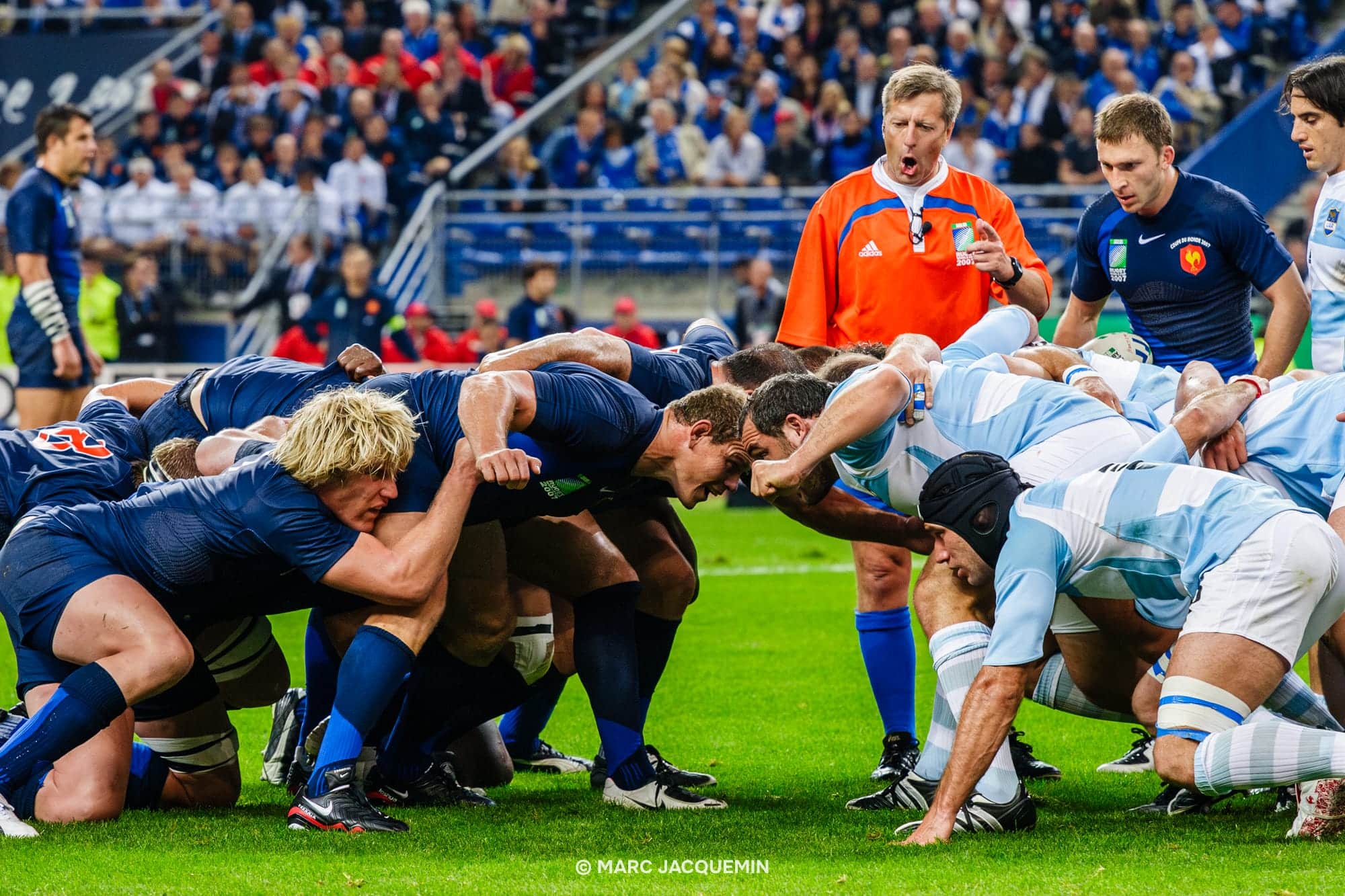 Diese Galerie zeigt einige exklusive Momente des Turniers: die Eröffnungsfeier, das Eröffnungsspiel Frankreich gegen Argentinien (12:17), das Gruppenspiel England gegen Südafrika (0:36) sowie den Auftritt der neuseeländischen All Blacks in einem Sportgeschäft auf den Champs-Élysées.